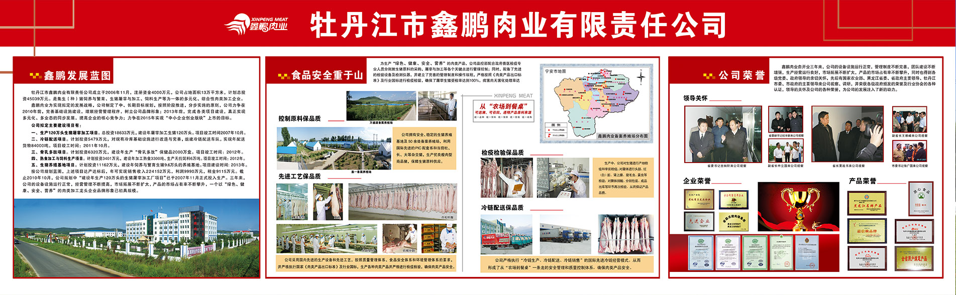 牡丹江市鑫鹏肉业有限责任公司 地址:宁安市范家工业园区 销售:刘总 15945383333 销售:荣总 15145336666 法人:张青 13945366608 办公电话:0453-7872333、7872555 邮箱:xpmeat@163.com