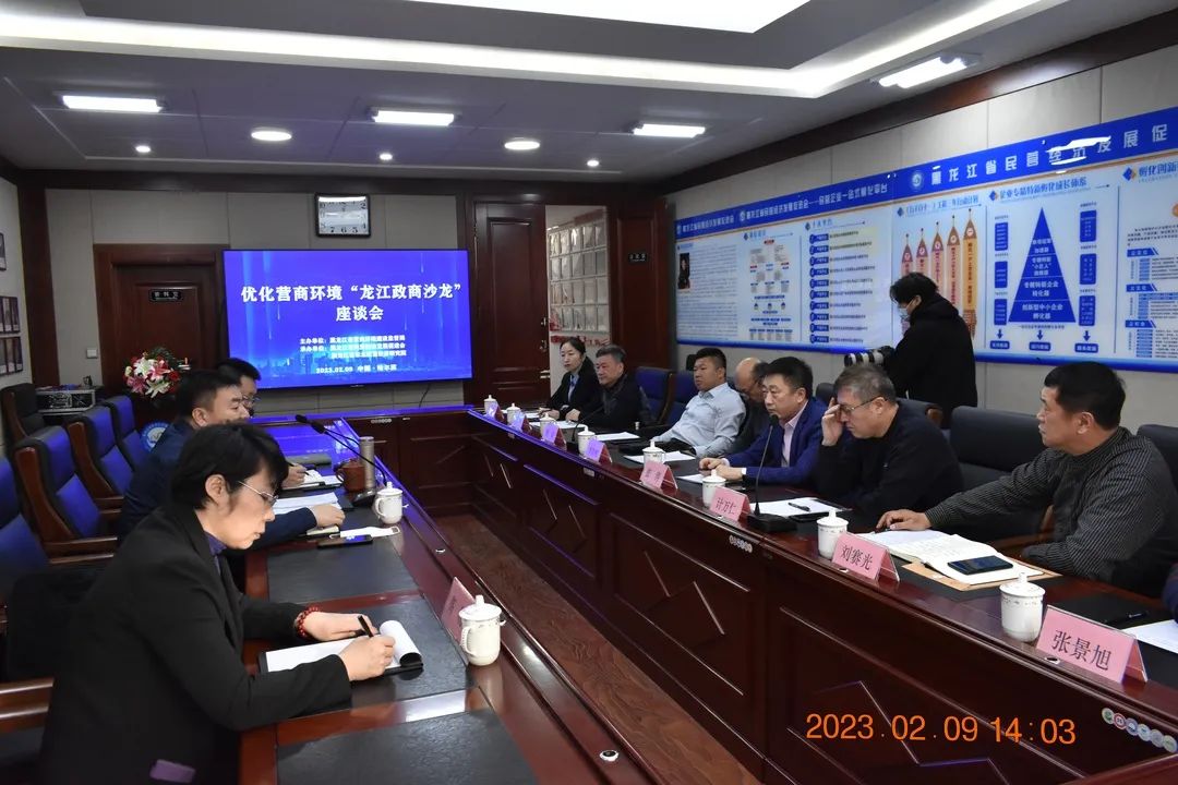 为认真贯彻落实全省两会、全省民营经济发展大会以及《关于促进经济运行整体好转的若干政策措施》精神,进一步拓展政商沟通渠道,深入征求广大市场主体对经济发展、社会建设、优化营商环境方面的意见建议,构建亲清政商关系,2月9日下午,省营商环境建设监督局与省民营经济发展促进会、黑龙江省东北民营经济研究院等单位联合组织优化营商环境“龙江政商沙龙”活动,此次活动在南岗区隆顺街14号省民营经济发展促进会三楼会议室组织开展。活动由省营商环境监督局监督处处长商长君主持、省东北民营经济研究院院长张宏僖出席会议。