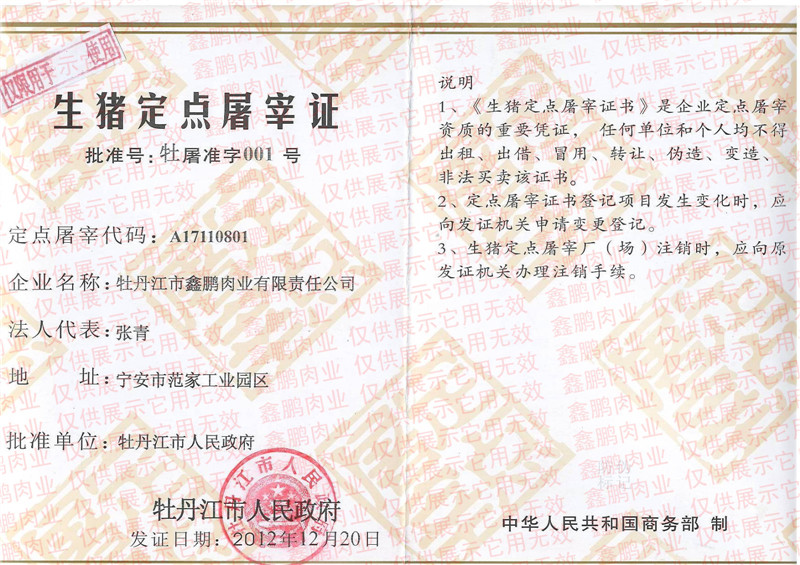 牡丹江市鑫鹏肉业有限责任公司
